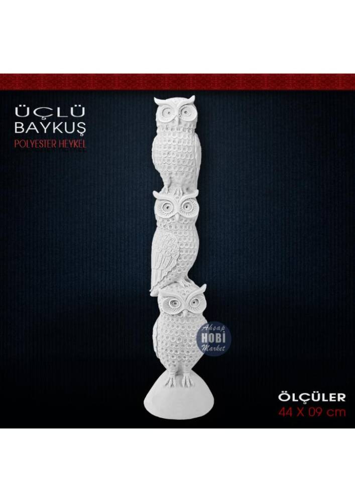 Boyanabilir Polyester 3'lü Baykuş Heykeli, birinci kalite polyesterden, 3 boyutlu olarak özel makinalarda dökülmüş, modern, minimalist ve avangard başta olmak üzere her tür dekorasyon trendine uygun olarak boyanabilecek, hatasız, mükemmel detaylı, tok görünümlü polyester aksesuar objedir. Taş tozundan veya silikon kalıba dökülerek yapılan objelerden değildir. Ağır ve tok bir görünüme sahiptir.
