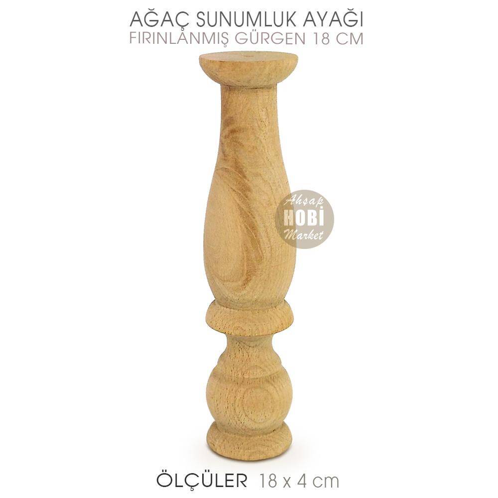 Doğal Ahşap Tornalı Büyük Sunumluk Ayağı, 18 cm yüksekliğe sahip olup 4 cm çap genişliğine sahiptir. Bu ayak genellikle alt ve üstten tek sunta vidası ile montaj yapılmaktadır. Bu ürün sunumluğunuzu net 18 cm yükseltir.