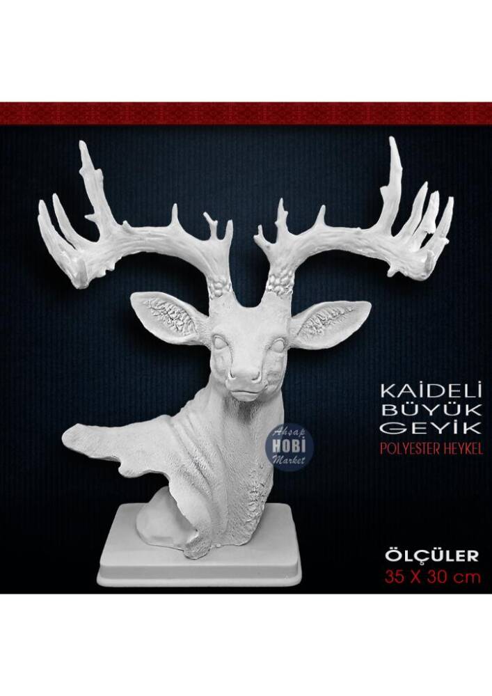 Kaideli Büyük Geyik Heykeli (35x30 cm) Ham Polyester