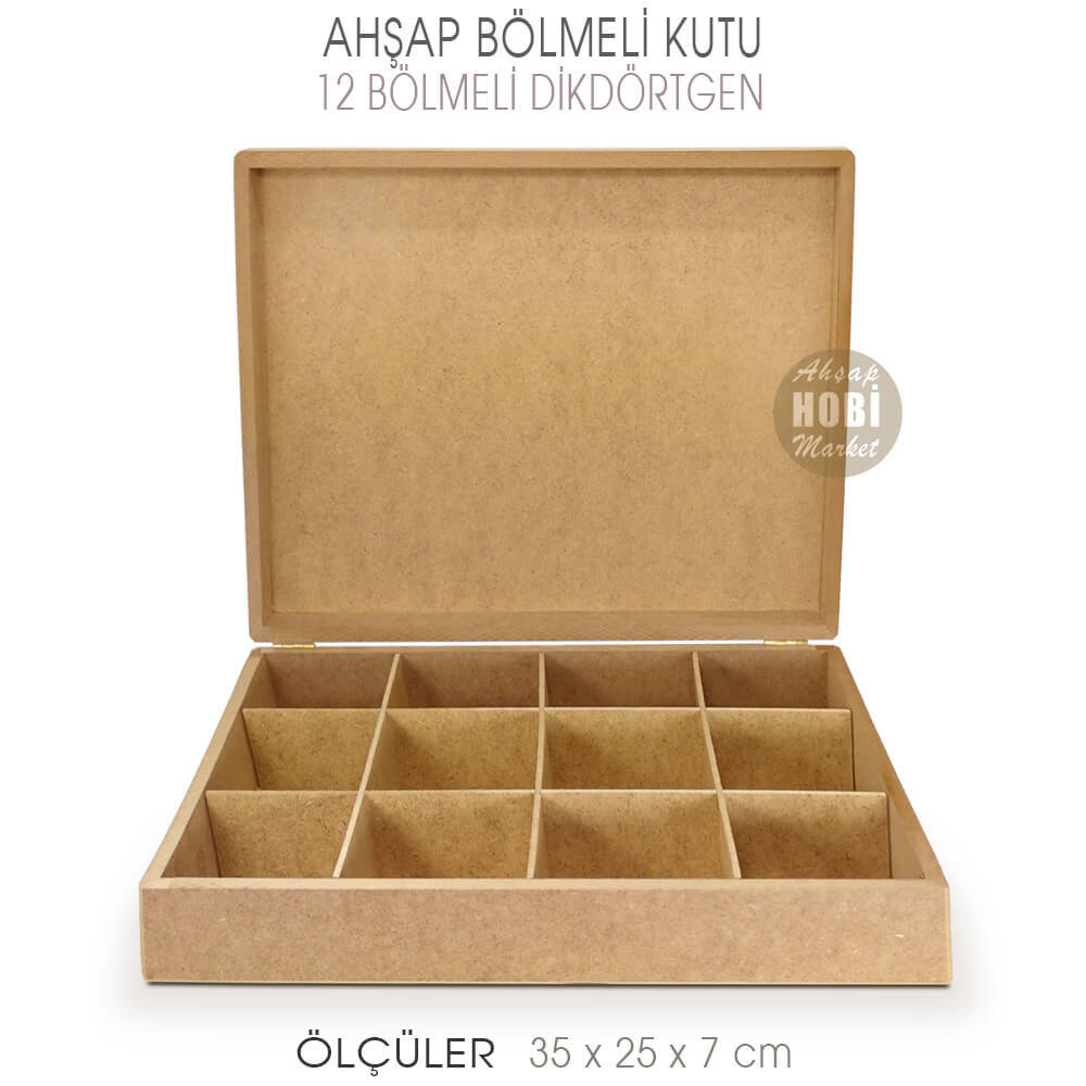 Gelince Haber VerAhşap 12 Bölmeli Dikdörtgen Büyük Kutu (35x25cm)