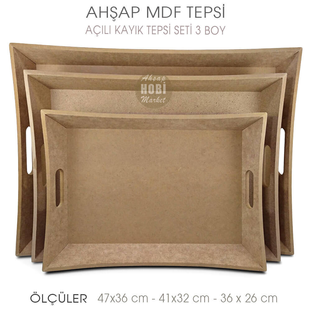 Ahşap Açılı Kayık Tepsi Seti, 8 mm kalınlığında kaliteli mdfden üretilmiş, kenarlarının açılı olması sayesinde ahşap boyama tamamlama tekniğine uygun, kullanışlı, modası geçmeyecek, ekonomik işlevsel bir üründür. Ahşap Boyamada giriş seviyesinde öğrenci tepsisi olarak değerlendirilebilecek, yüksek kaliteli fakat ucuz fiyatlı bir tepsidir.
