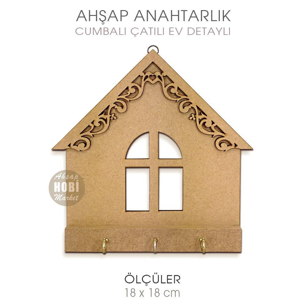 Ahşap Cumbalı Ev Anahtarlık Askısı ve Kapı Süsü, 18 cm yüksekliğinde, 18 cm genişliğinde, 4 mm kaliteli mdfden üretilmiş olup, duvara asmak suretiyle kullanılır. Duvara asmak için üzerinde askı aparatı bulunmaktadır.