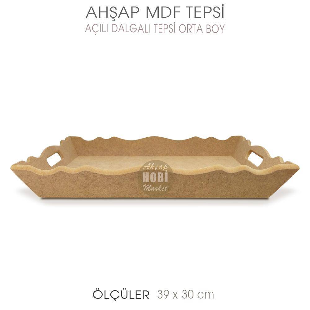 Ahşap Açılı Dalgalı Tepsi, 8 mm kalınlığında kaliteli mdfden üretilmiş, kenarlarının açılı olması sayesinde ahşap boyama tamamlama tekniğine uygun, kullanışlı, modası geçmeyecek, ekonomik işlevsel bir üründür. Ahşap boyamada tamamlamalı dekopaj öğrenci tepsisi olarak değerlendirilebilecek, yüksek kaliteli fakat uygun fiyatlı bir tepsidir.