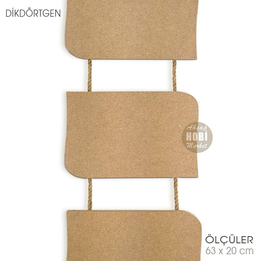 Gelince Haber VerAhşap Halat İpli 3'lü Dikdörtgen Duvar Pano (63x20 cm)