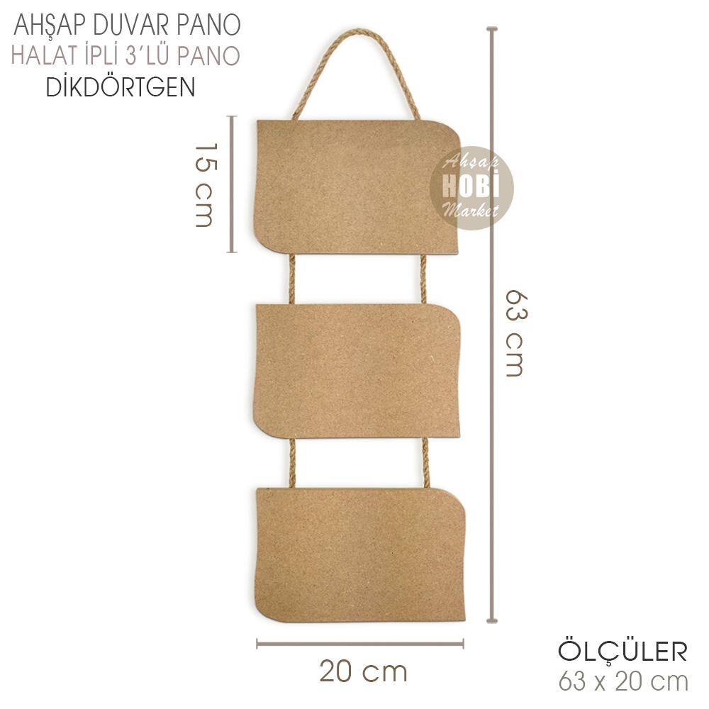 Ahşap İpli 3'lü Dikdörtgen Pano, birinci sınıf 8 mm kalınlığında Çamsan mdfden üretilmiş, hasır halat ile birbirine tutturulmuş 3 adet dikdörtgen panodan oluşmuş ahşap plakalardır. Her türlü dekorasyon trendinde rahatlıkla kullanılabilir, modası geçmeyecek popüler bir pano setidir. Ahşap panolarımız sevkiyata gönderilmeden zımparalanmış, boyamaya hazır olarak paketlenmektedir. Dolayısıyla zımparalamanıza gerek yoktur. Tüm panolar su bazlı olan ve olmayan, akrilik ve sentetik her türlü boya ve verniğe uygun, uzun ömürlü ürünlerdir.