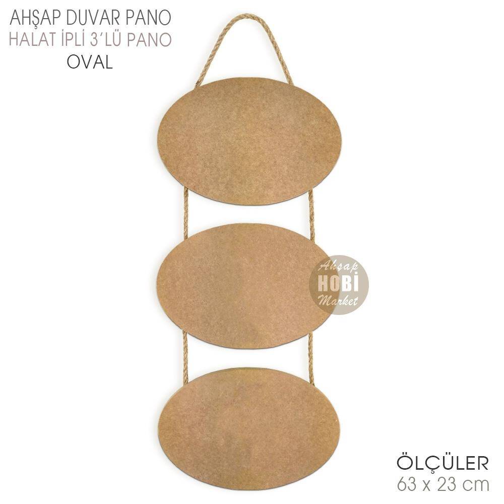 Gelince Haber VerAhşap Halat İpli 3'lü Oval Duvar Pano (63x23 cm)