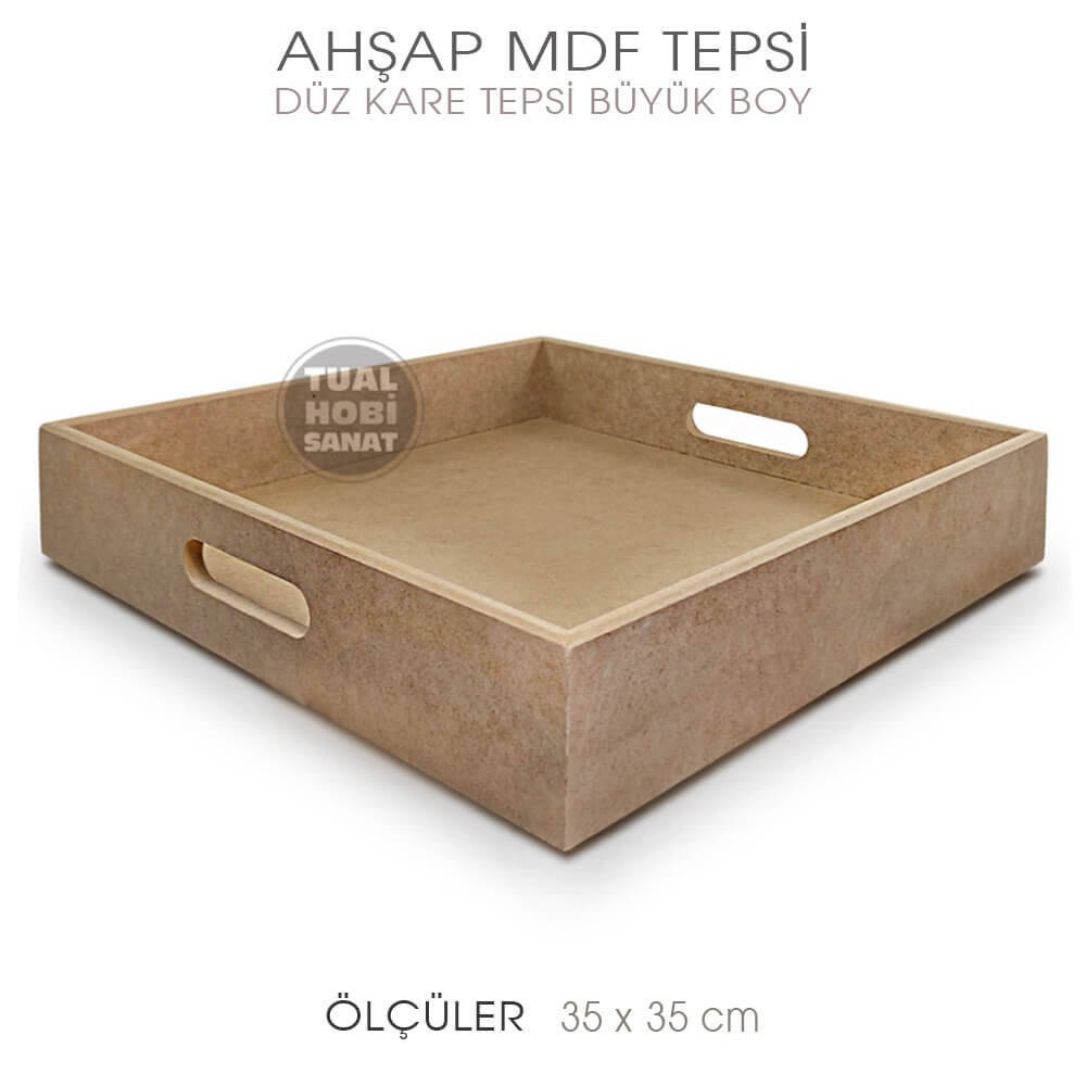 Ahşap Kare Tepsi, 8mm kalınlığında kaliteli mdfden üretilmiş, 6cm derinliğe sahip, tüm ahşap boyama tekniklerine uygun, kullanışlı, modası geçmeyecek, işlevsel bir üründür. Ahşap Boyama tepsisi olarak değerlendirilebilecek, yüksek kaliteli fakat ucuz fiyatlı bir tepsidir.