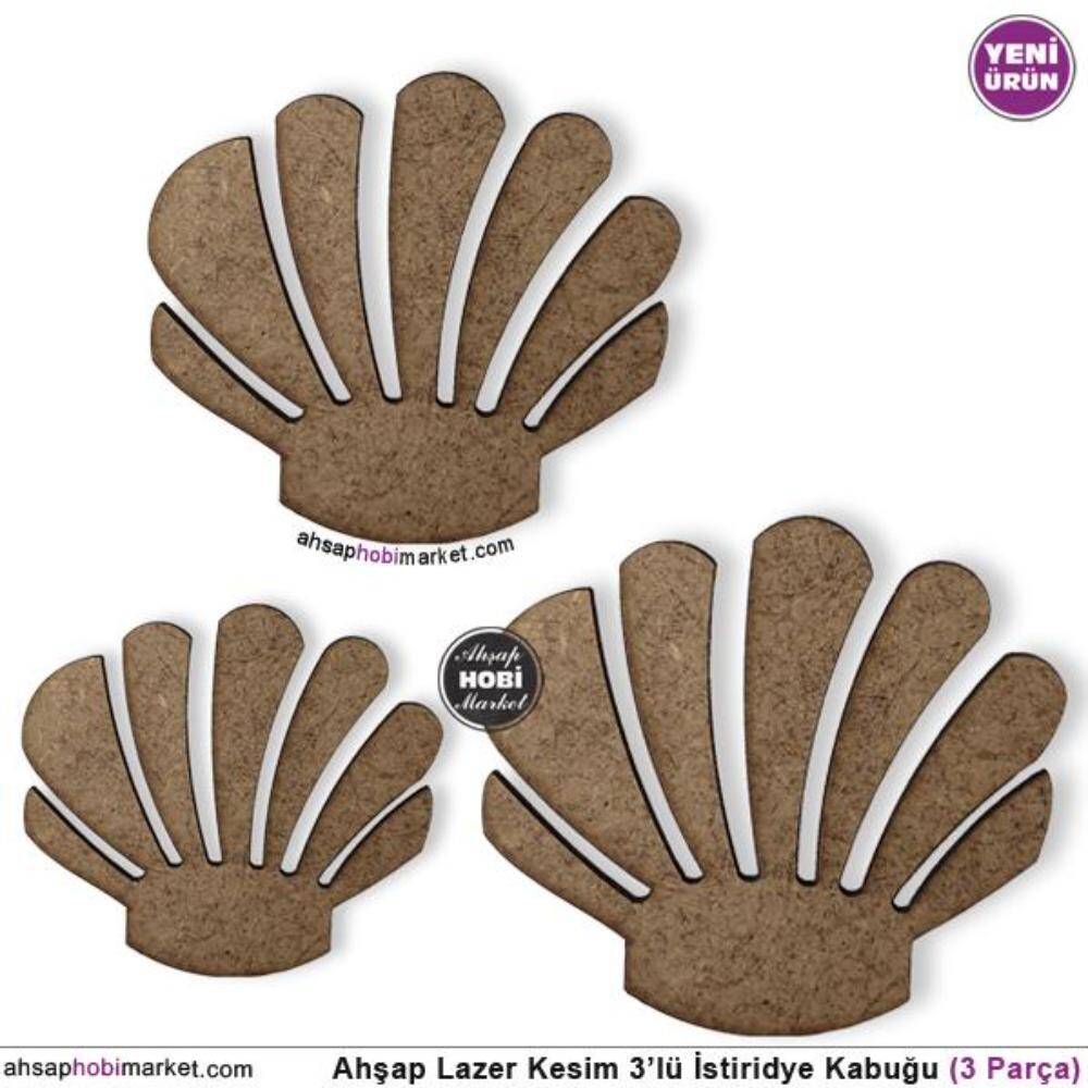 Ahşap Lazer Kesim 3'lü istiridye Kabuğu Seti
