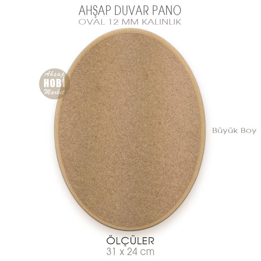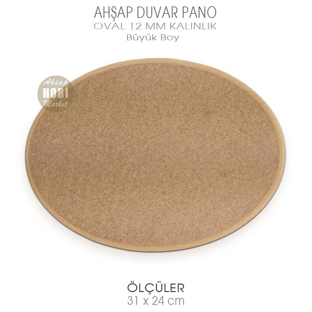 Ahşap Oval Kalın Duvar Pano Büyük Boy, 31x24 cm ölçülere ve 1,2 cm kalınlığa sahiptir. Arkasında duvara asmak için yatay ve dikey kullanıma uygun delikler bulunmaktadır.
