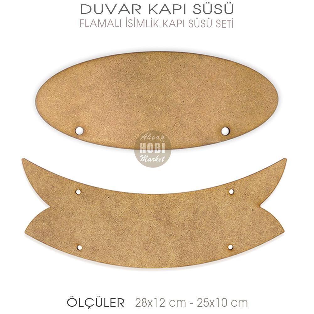 Ahşap Oval Flamalı İsimlik Kapı Süsü Duvar Pano Seti, 25x10 cm ölçüsünde oval, 28x12 cm ölçüsünde isimlik flamadan oluşmaktadır. İsterseniz tek olarak, isterseniz de panoları kombin yaparak kullanabilirsiniz. Aralarında 3 cm bırakarak bağlandığı taktirde duvarda 28x25 cm lik yer kaplamaktadır.