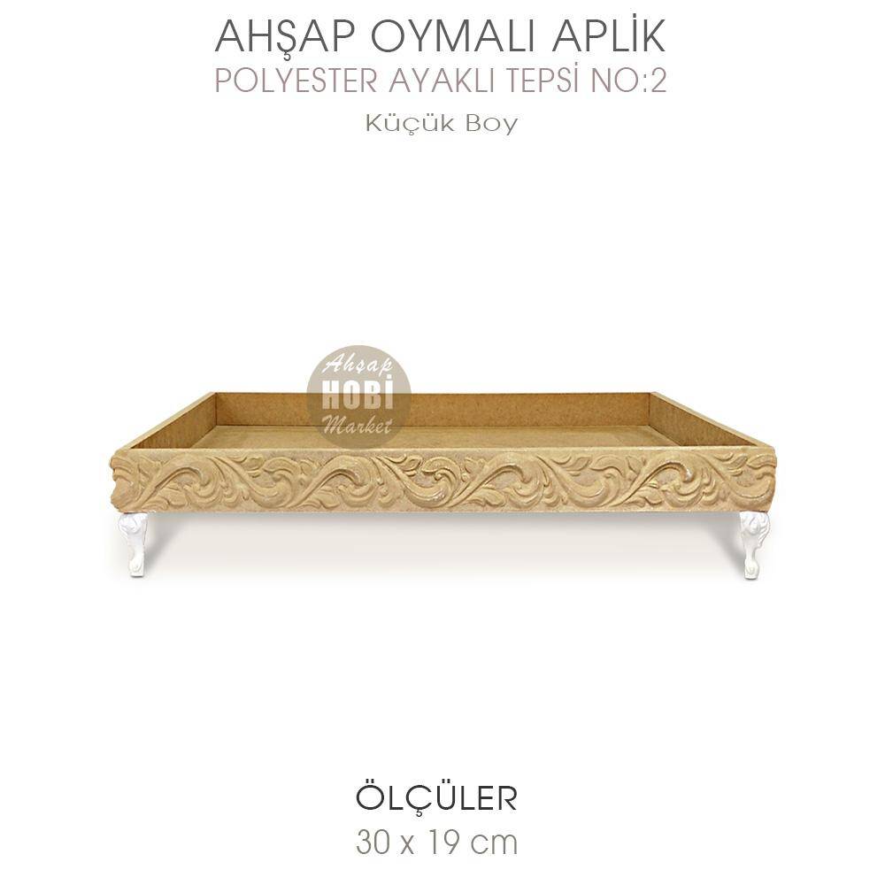 Ahşap Oymalı Aplik Tepsi Küçük Boy Model 2 (30x19cm) Polyester Ayaklı