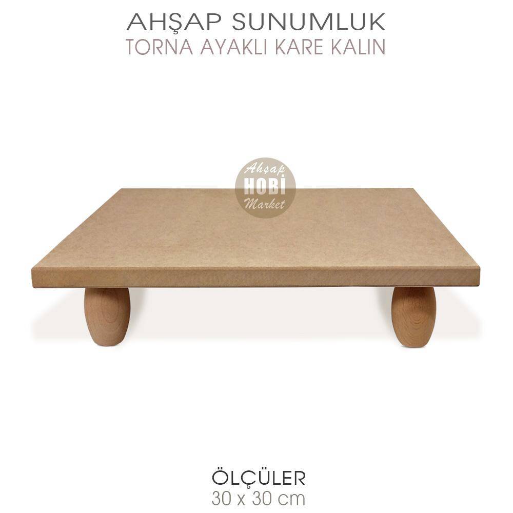 Ahşap Torna Ayaklı Yuvarlak Sunumluk (30x30 cm) OSU28