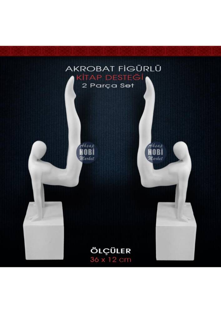 Boyanabilir Polyester Akrobat Adam Kitap Tutucu Set (2 Parça), birinci kalite polyesterden, 3 boyutlu olarak özel makinalarda dökülmüş, avangarde ve klasik başta olmak üzere her tür dekorasyon trendine uygun olarak boyanabilecek, hatasız, mükemmel detaylı, tok görünümlü, işlevsel bir polyester aksesuar objedir. Taş tozundan veya silikon kalıba dökülerek yapılan objelerden değildir. Ağır ve tok bir görünüme sahiptir.