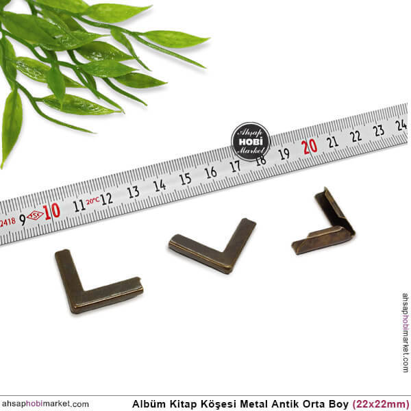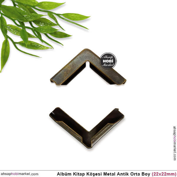 Metal Albüm ve Kitap Köşeleri kaliteli sac metalden üretilmiş oksit eskitme yapılmış olup, 22 mm yüksekliğe, 22 mm genişliğe sahiptir. Kitap kapağının girdiği ara ölçüsü 5 mm boyutundadır.