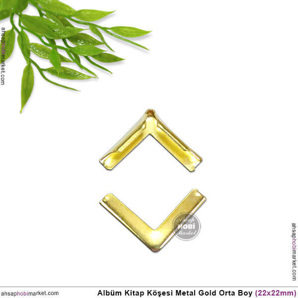 Metal Albüm ve Kitap Köşeleri Altın Renkli kaliteli metalden üretilmiş sarı metal ile kaplanmış olup, 22 mm yüksekliğe, 22 mm genişliğe sahiptir. Kitap kapağının girdiği ara ölçüsü 5 mm boyutundadır.