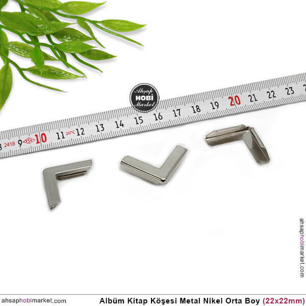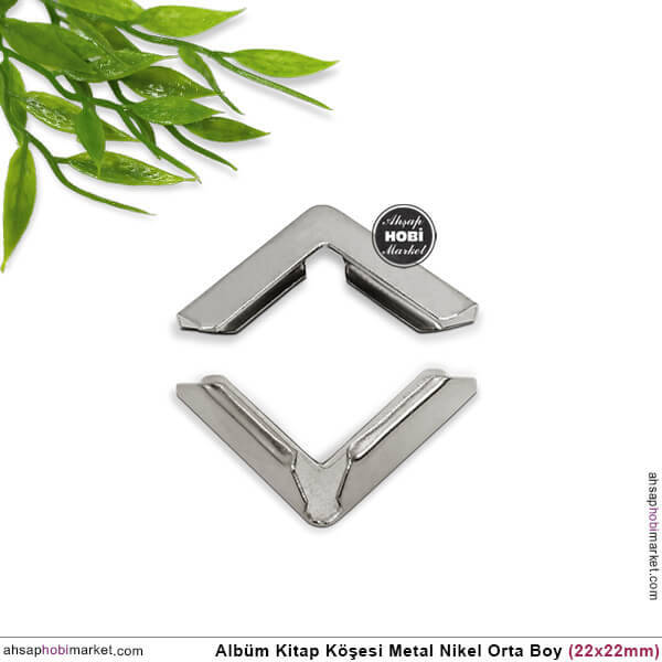 Metal Albüm ve Kitap Köşeleri Gümüş Renkli kaliteli metalden üretilmiş nikel ile kaplanmış olup, 22 mm yüksekliğe, 22 mm genişliğe sahiptir. Kitap kapağının girdiği ara ölçüsü 5 mm boyutundadır.