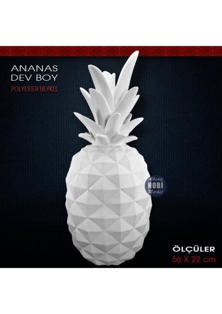 Polyester Dev Boy Ananas Heykeli, polyesterden özel makinalarda dökülmüş, her türlü dekorasyon trendine uygun olarak boyanabilecek, 3 boyutlu trend ve gösterişli bir aksesuar objedir. Büyük dev boy polyester ananas biblo ağır ve tok bir görünüme sahiptir.