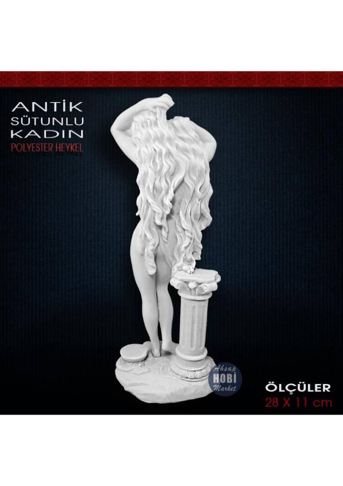 Gelince Haber VerAntik Sütunlu Kadın Biblo (28x11 cm) Ham Polyester HB425