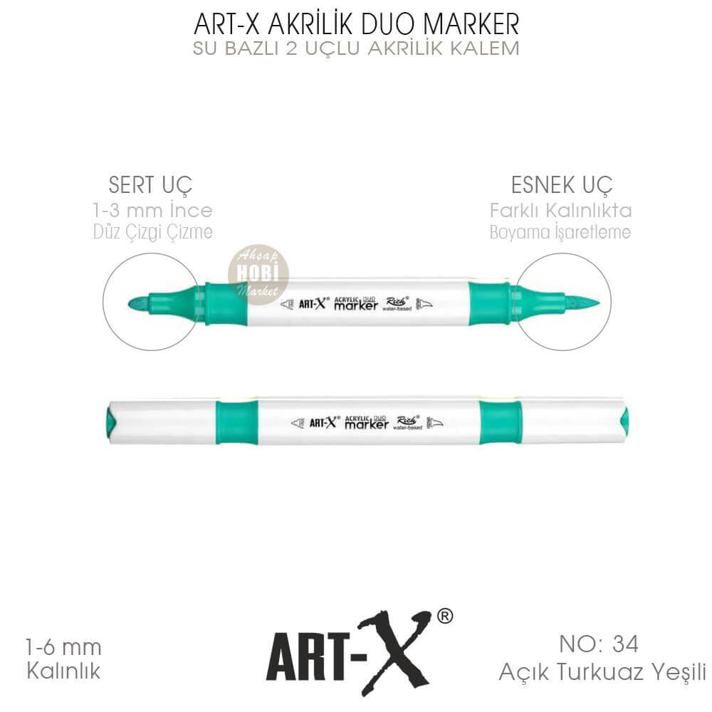 Art-X Akrilik Duo Marker 034 Açık Turkuaz Yeşili 2 Uçlu Akrilik Kalem