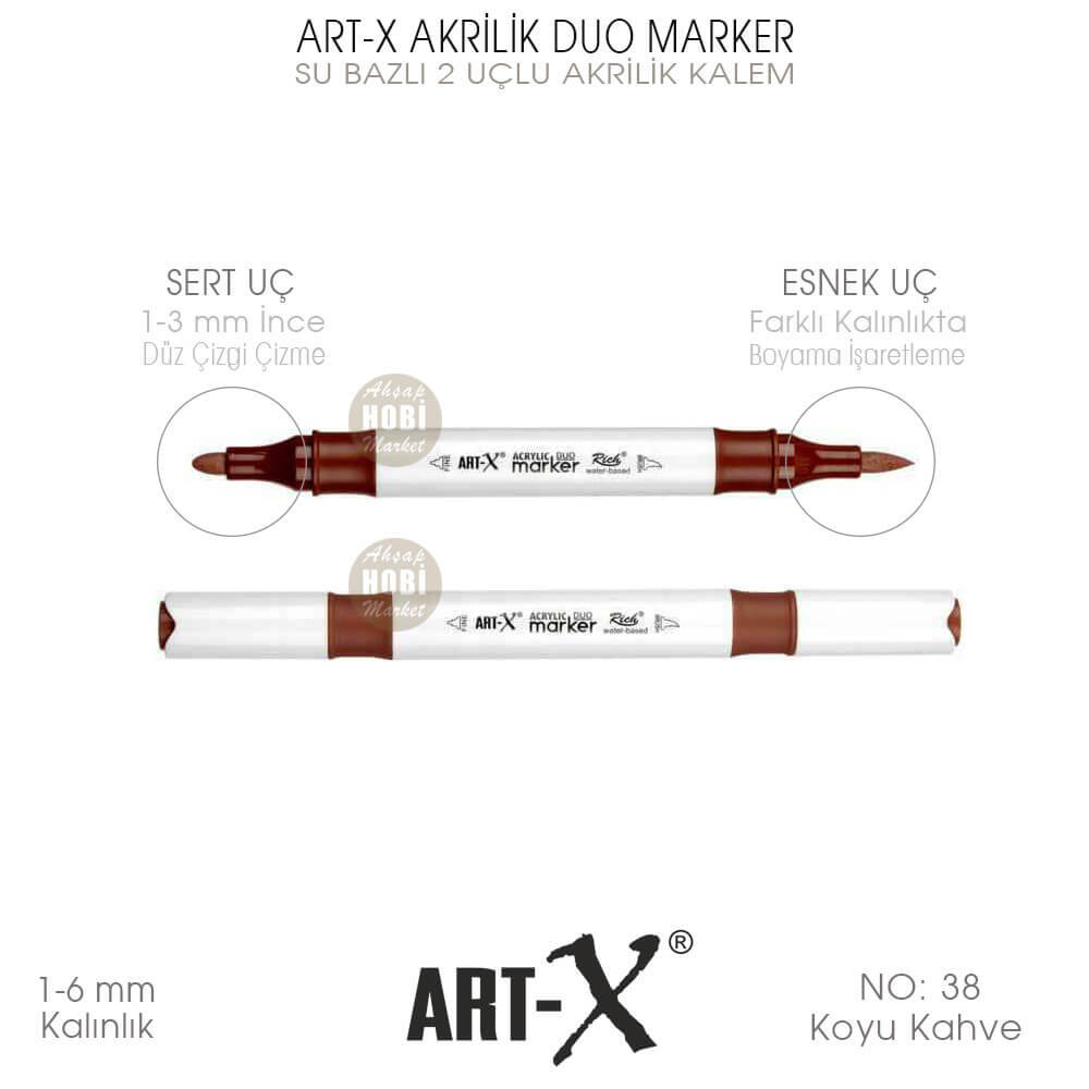 Art-X Akrilik Duo Marker 038 Koyu Kahve 2 Uçlu Akrilik Kalem