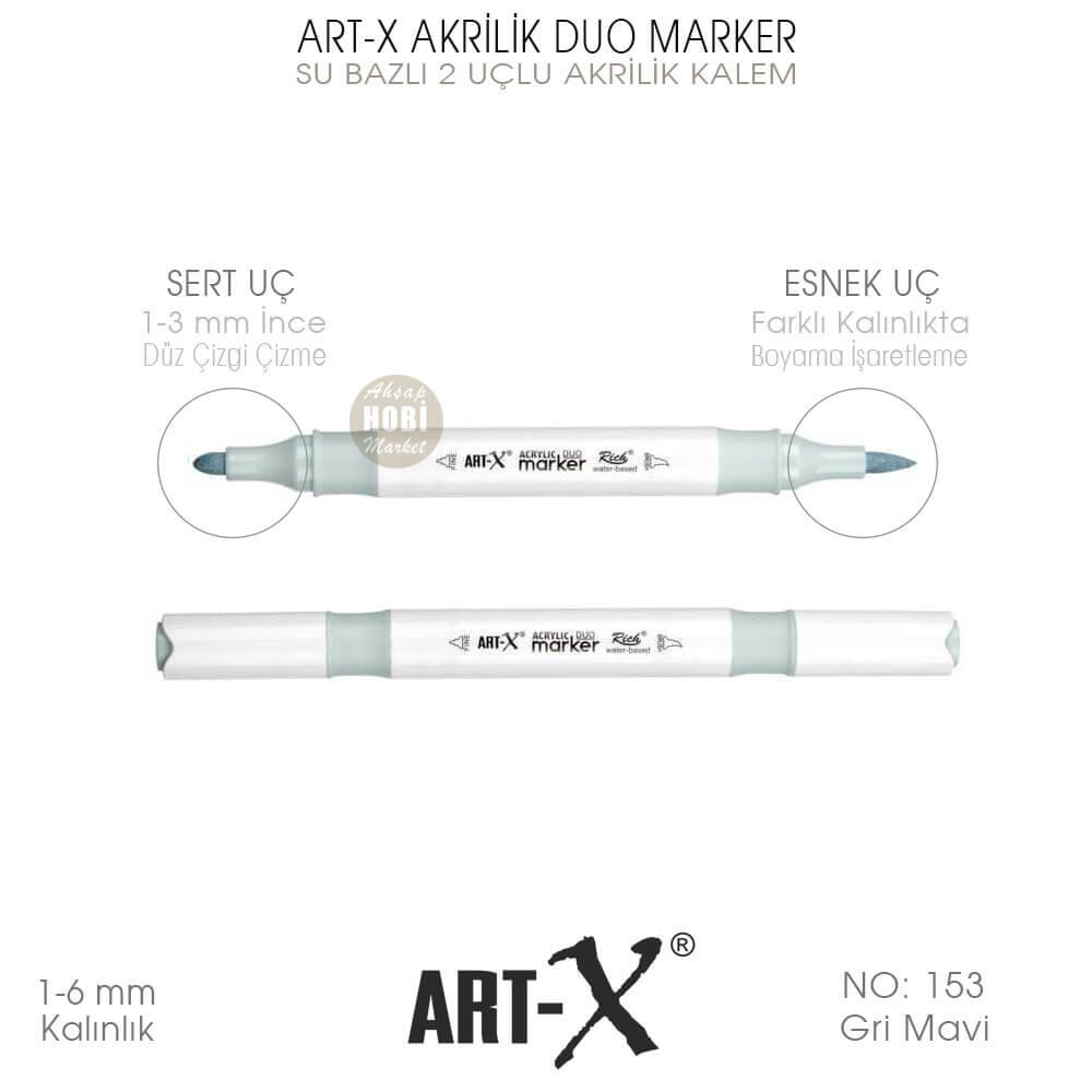 Art-X Akrilik Duo Marker 153 Gri Mavi 2 Uçlu Akrilik Kalem