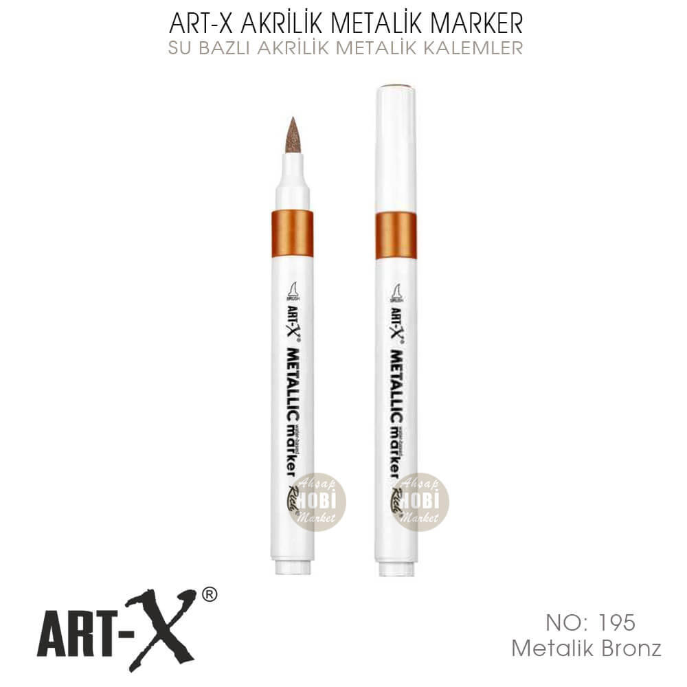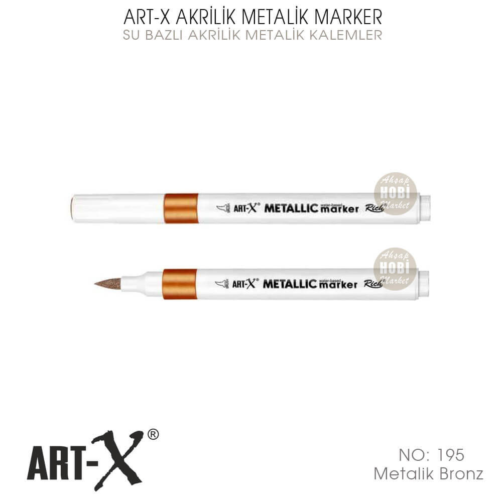 ART-X Akrilik Metalik Marker Su Bazlı Akrilik Boya ve Çizim Kalemleri, her türlü hobi projesinde kullanılan, su bazlı, içerisinde sağlığa zararlı toksik madde bulunmayan, akrilik işaretleme ve boyama kalemleridir. Özellikle hassas ve detay boyama ve işaretlemeye ihtiyaç duyulan projelerde kullanılır.