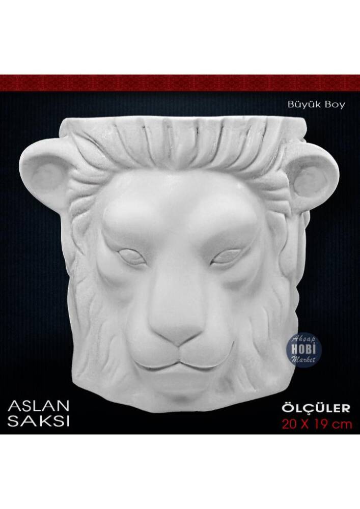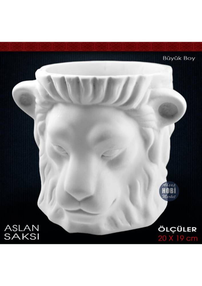 Aslan Heykel Saksı Büyük Boy (20x19 cm) Ham Polyester