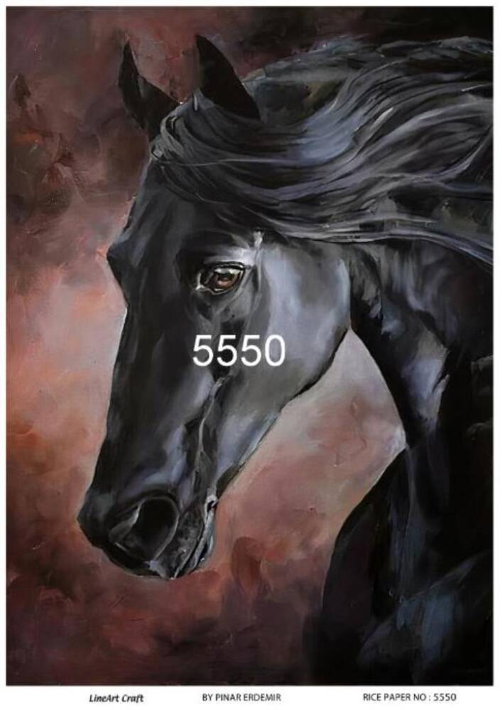 LineArt At Desenli Pirinç Dekopaj - Model : 5550 , pirinç çeltiğinden üretilmiş, her türlü hobi projesinde kullanılabilen, dekopaj tutkalı ile yapıştırılabilen, yapıştırıldığı yüzeyde hava kabarcığı bırakmayan, birinci kalite dekopaj kağıdıdır. Pirinç Dekopajların üzerleindeki desenler, kullanıldığı ürünün görkemli ve üst düzey gözükmesini sağlamaktadır.