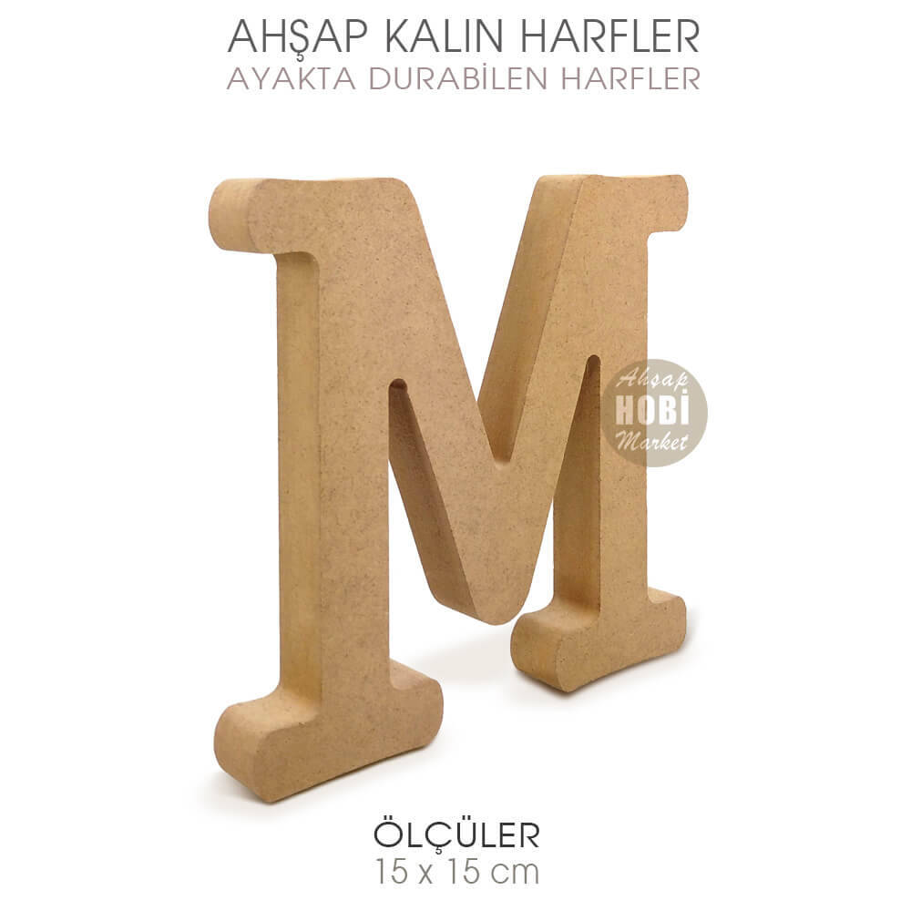 Gelince Haber VerAhşap Ayakta Durabilen Büyük M Harfi, yaklaşık 2 cm kalınlığa, 15 cm yüksekliğe sahip olup, harfin cinsine göre 13 ile 18cm genişliğe sahiptir. Kaliteli 18 mm kalınlığında Çamsan mdfden üretilmiş olan ayakta durabilen harfler, her türlü akrilik ve sentetik boya ile boyanabilir, üzerine dekopaj ve transfer teknikleri uygulanabilir, eskitme ve tüm ahşap boyama teknikleri uygulanabilir.