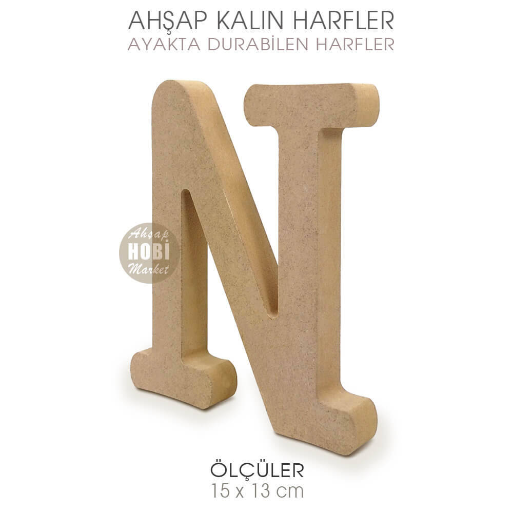 Gelince Haber VerAhşap Ayakta Durabilen Büyük N Harfi, yaklaşık 2 cm kalınlığa, 15 cm yüksekliğe sahip olup, harfin cinsine göre 13 ile 18cm genişliğe sahiptir. Kaliteli 18 mm kalınlığında Çamsan mdfden üretilmiş olan ayakta durabilen harfler, her türlü akrilik ve sentetik boya ile boyanabilir, üzerine dekopaj ve transfer teknikleri uygulanabilir, eskitme ve tüm ahşap boyama teknikleri uygulanabilir.