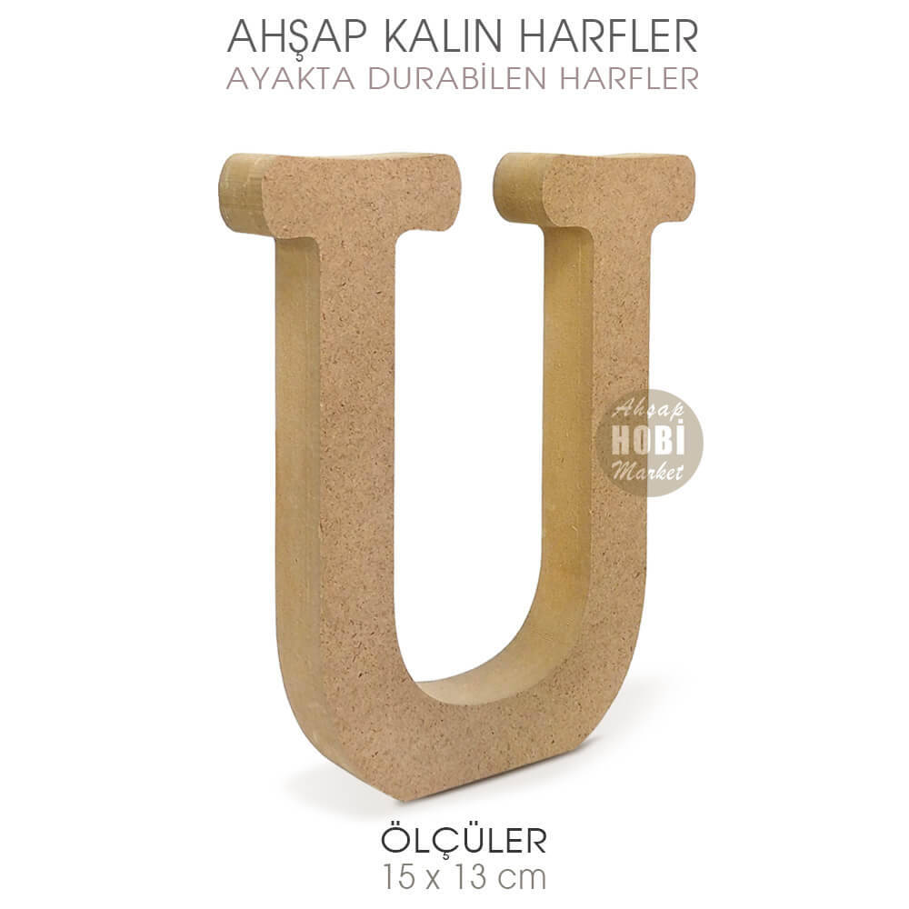 Gelince Haber VerAhşap Ayakta Durabilen Büyük U Harfi, yaklaşık 2 cm kalınlığa, 15 cm yüksekliğe sahip olup, harfin cinsine göre 13 ile 18cm genişliğe sahiptir. Kaliteli 18 mm kalınlığında Çamsan mdfden üretilmiş olan ayakta durabilen harfler, her türlü akrilik ve sentetik boya ile boyanabilir, üzerine dekopaj ve transfer teknikleri uygulanabilir, eskitme ve tüm ahşap boyama teknikleri uygulanabilir.