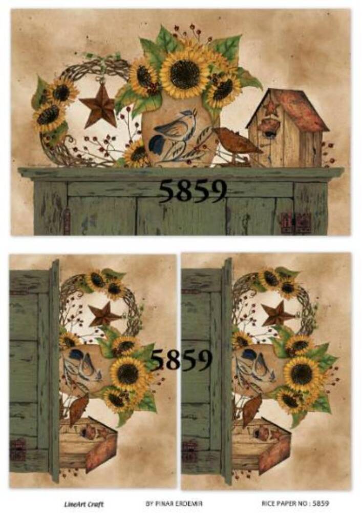 Gelince Haber VerLineArt Ayçiçeği Desenli Pirinç Dekopaj - Model : 5859 Boyut (30x42cm)