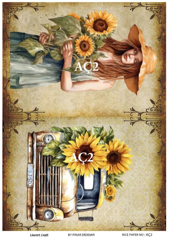 LineArt Ayçiçeği Desenli Pirinç Dekopaj - Model : AÇ02 , pirinç çeltiğinden üretilmiş, her türlü hobi projesinde kullanılabilen, dekopaj tutkalı ile yapıştırılabilen, yapıştırıldığı yüzeyde hava kabarcığı bırakmayan, birinci kalite dekopaj kağıdıdır. Pirinç Dekopajların üzerleindeki desenler, kullanıldığı ürünün görkemli ve üst düzey gözükmesini sağlamaktadır.