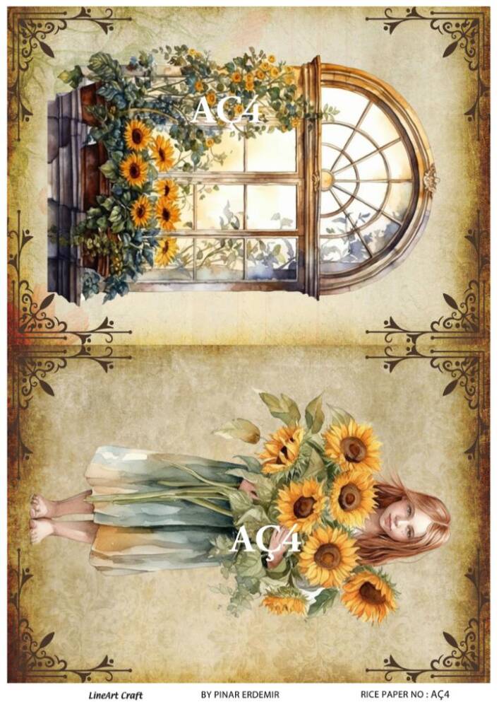 LineArt Ayçiçeği Desenli Pirinç Dekopaj - Model : AÇ04 , pirinç çeltiğinden üretilmiş, her türlü hobi projesinde kullanılabilen, dekopaj tutkalı ile yapıştırılabilen, yapıştırıldığı yüzeyde hava kabarcığı bırakmayan, birinci kalite dekopaj kağıdıdır. Pirinç Dekopajların üzerleindeki desenler, kullanıldığı ürünün görkemli ve üst düzey gözükmesini sağlamaktadır.