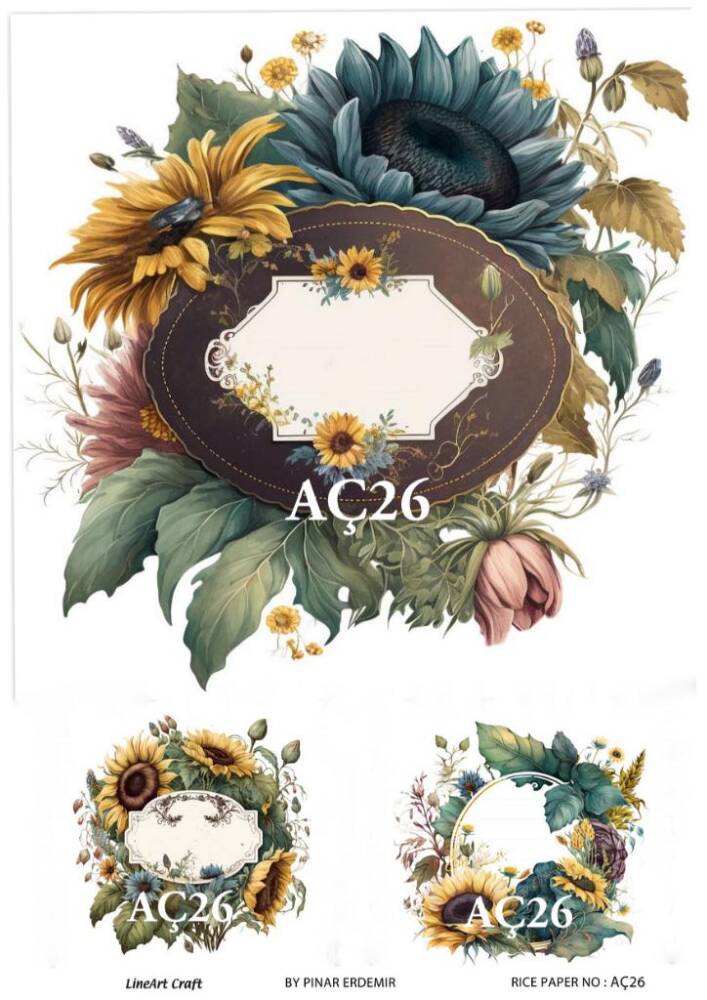 LineArt Ayçiçeği Desenli Pirinç Dekopaj - Model : AÇ26 , pirinç çeltiğinden üretilmiş, her türlü hobi projesinde kullanılabilen, dekopaj tutkalı ile yapıştırılabilen, yapıştırıldığı yüzeyde hava kabarcığı bırakmayan, birinci kalite dekopaj kağıdıdır. Pirinç Dekopajların üzerleindeki desenler, kullanıldığı ürünün görkemli ve üst düzey gözükmesini sağlamaktadır.