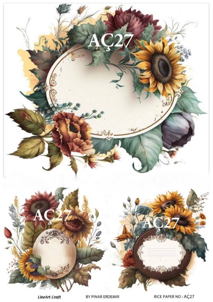 LineArt Ayçiçeği Desenli Pirinç Dekopaj - Model : AÇ27 , pirinç çeltiğinden üretilmiş, her türlü hobi projesinde kullanılabilen, dekopaj tutkalı ile yapıştırılabilen, yapıştırıldığı yüzeyde hava kabarcığı bırakmayan, birinci kalite dekopaj kağıdıdır. Pirinç Dekopajların üzerleindeki desenler, kullanıldığı ürünün görkemli ve üst düzey gözükmesini sağlamaktadır.