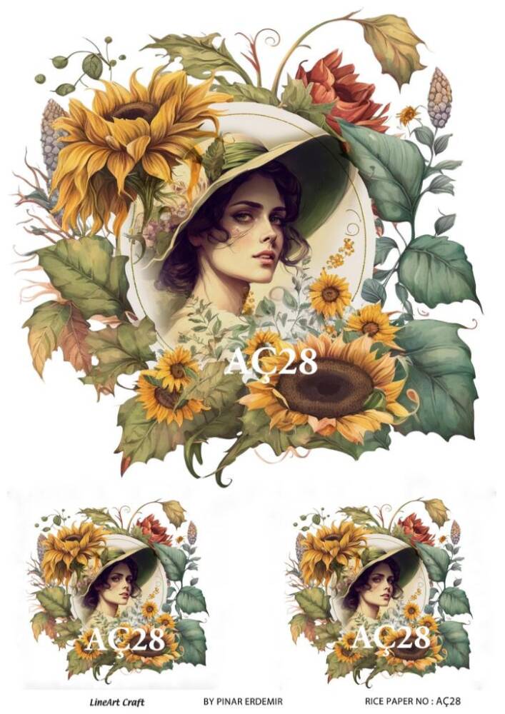 LineArt Ayçiçeği Desenli Pirinç Dekopaj - Model : AÇ28 , pirinç çeltiğinden üretilmiş, her türlü hobi projesinde kullanılabilen, dekopaj tutkalı ile yapıştırılabilen, yapıştırıldığı yüzeyde hava kabarcığı bırakmayan, birinci kalite dekopaj kağıdıdır. Pirinç Dekopajların üzerleindeki desenler, kullanıldığı ürünün görkemli ve üst düzey gözükmesini sağlamaktadır.