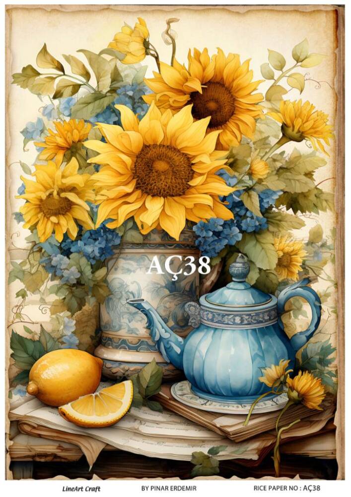 LineArt Ayçiçeği Desenli Pirinç Dekopaj - Model : AÇ38 , pirinç çeltiğinden üretilmiş, her türlü hobi projesinde kullanılabilen, dekopaj tutkalı ile yapıştırılabilen, yapıştırıldığı yüzeyde hava kabarcığı bırakmayan, birinci kalite dekopaj kağıdıdır. Pirinç Dekopajların üzerleindeki desenler, kullanıldığı ürünün görkemli ve üst düzey gözükmesini sağlamaktadır.