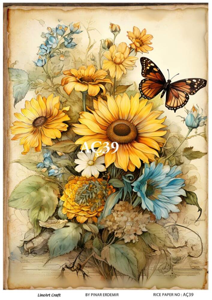 LineArt Ayçiçeği Desenli Pirinç Dekopaj - Model : AÇ39 , pirinç çeltiğinden üretilmiş, her türlü hobi projesinde kullanılabilen, dekopaj tutkalı ile yapıştırılabilen, yapıştırıldığı yüzeyde hava kabarcığı bırakmayan, birinci kalite dekopaj kağıdıdır. Pirinç Dekopajların üzerleindeki desenler, kullanıldığı ürünün görkemli ve üst düzey gözükmesini sağlamaktadır.