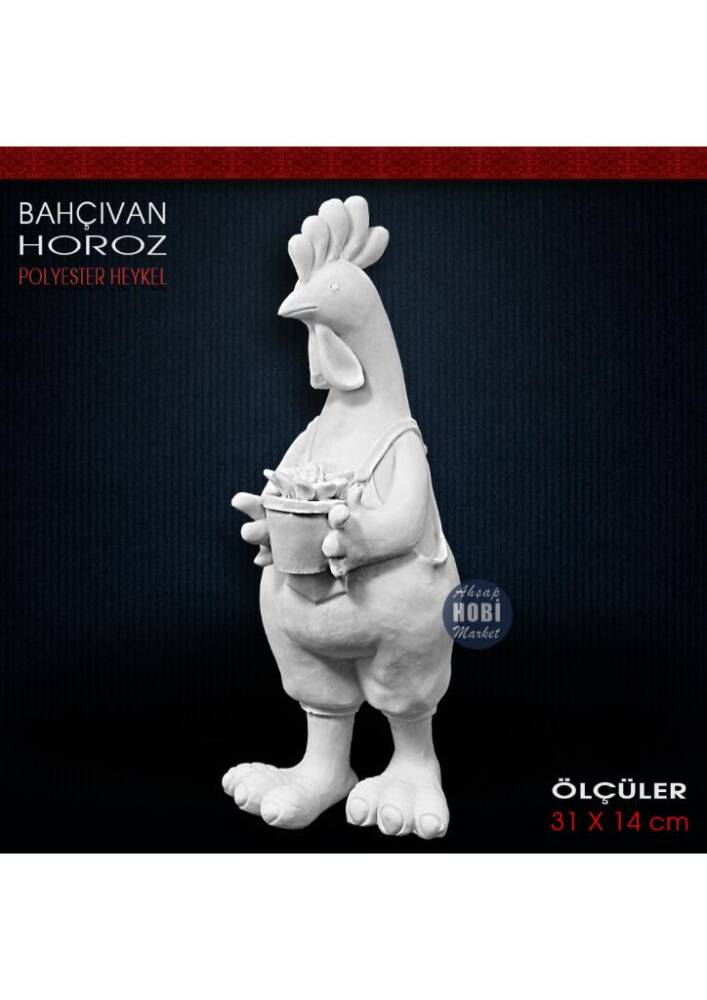 Bahçıvan Horoz Biblo Heykeli (31x14 cm) Ham Polyester