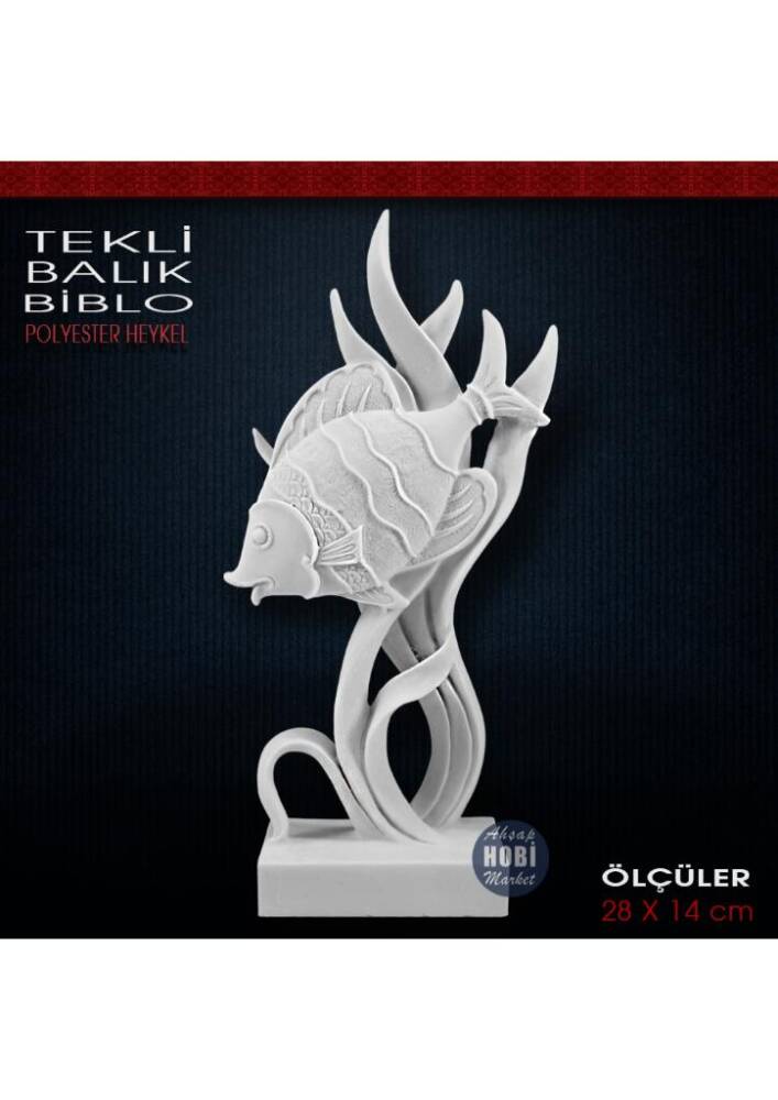 Polyester Tekli Balık Heykeli, 28 cm yüksekliğinde 14 cm genişliğinde üç boyutlu bir aksesuar objedir. Alttaki Kaidesinin büyüklüğü 10cm x 6,5cm ölçüsündedir.