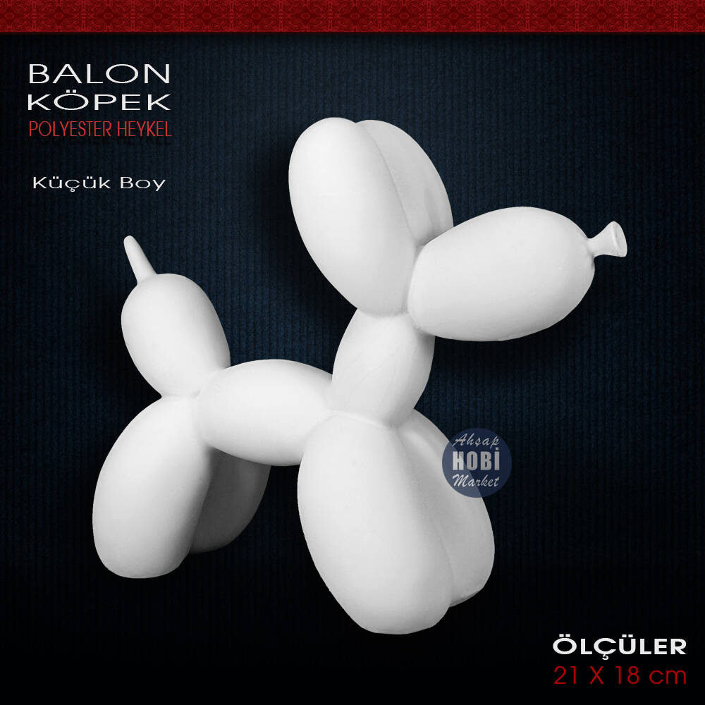 Balon Köpek Heykeli Küçük Boy, 18 cm yüksekliğinde, 21 cm genişliğinde, 9 cm derinliğinde üç boyutlu, içi dolu polyester den üretilmiş popüler bir dekoratif aksesuar objedir.