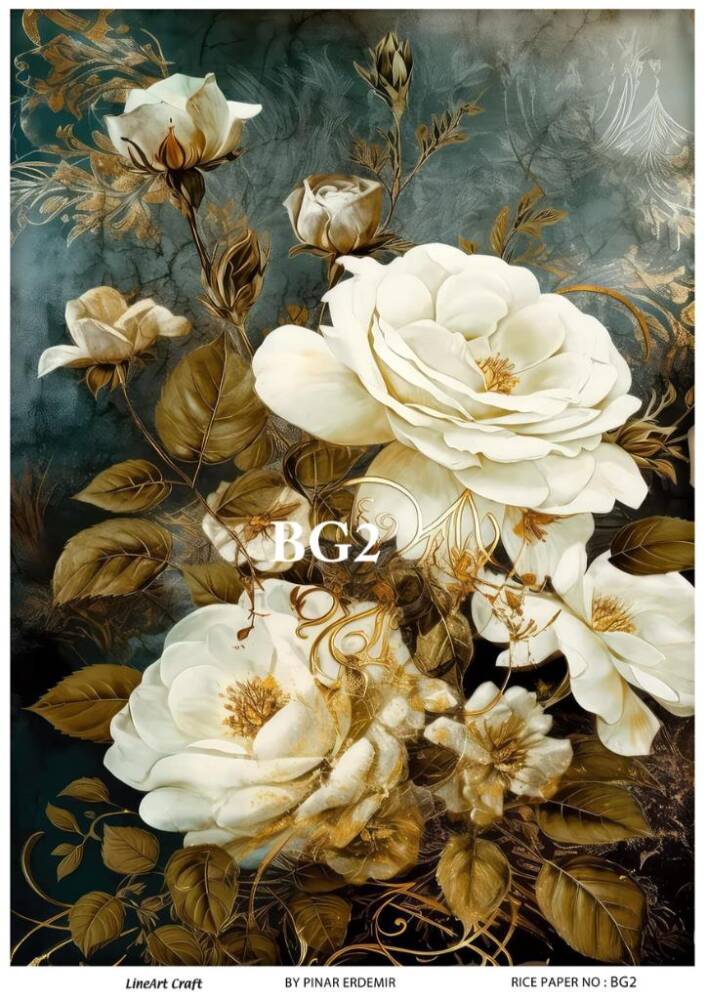 LineArt ,Beyaz Gü,l ,Desenli Pirinç, Dekopaj - Model : BG02 , pirinç, ç,eltiğinden ü,retilmiş, her tü,rlü, hobi projesinde kullanılabilen, dekopaj tutkalı ile yapıştırılabilen, yapıştırıldığı yü,zeyde hava kabarcığı bırakmayan, birinci kalite dekopaj kağıdıdır. Pirinç, Dekopajların ü,zerleindeki desenler, kullanıldığı ü,rü,nü,n gö,rkemli ve ü,st dü,zey gö,zü,kmesini sağlamaktadır.