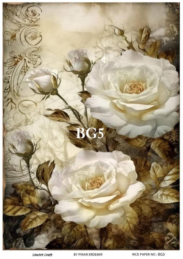 LineArt ,Beyaz Gü,l ,Desenli Pirinç, Dekopaj - Model : BG05 , pirinç, ç,eltiğinden ü,retilmiş, her tü,rlü, hobi projesinde kullanılabilen, dekopaj tutkalı ile yapıştırılabilen, yapıştırıldığı yü,zeyde hava kabarcığı bırakmayan, birinci kalite dekopaj kağıdıdır. Pirinç, Dekopajların ü,zerleindeki desenler, kullanıldığı ü,rü,nü,n gö,rkemli ve ü,st dü,zey gö,zü,kmesini sağlamaktadır.