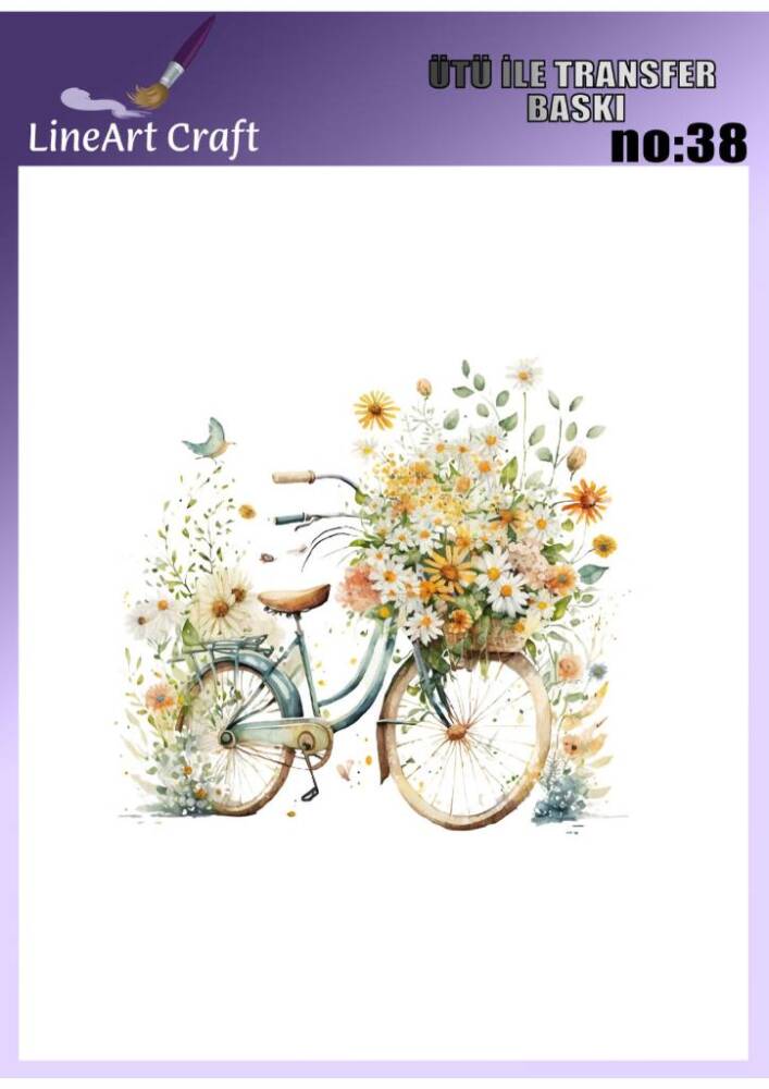 Bisiklet ve Çiçek Desenli Kumaş Transfer Kağıdı LNT-K038 (20x20 cm)
