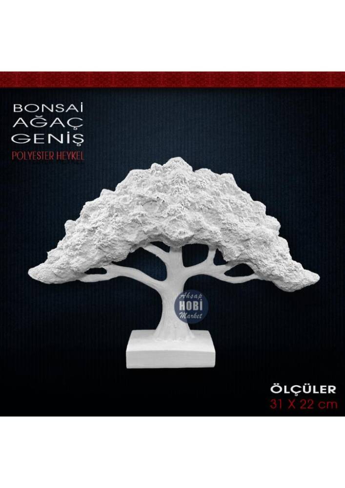 Polyester Bonsai Ağaç Biblo Geniş, kendinden desen ve detaylı, üç boyutlu ve kaideli, ahşap ve seramiğe göre daha kolay boyanabilien, tüm ev dekorasyonunda kullanabileceğiniz içi dolu polyesterden üretilmiş ağır bir dekoratif objedir. Birinci sınıf polyester malzemesiyle dökülmüş, pürüzsüz ve boyamaya hazır, her türlü akrilik ve sentetik boyayla boyanabilen, uzun ömürlü bir dekoratif üründür.