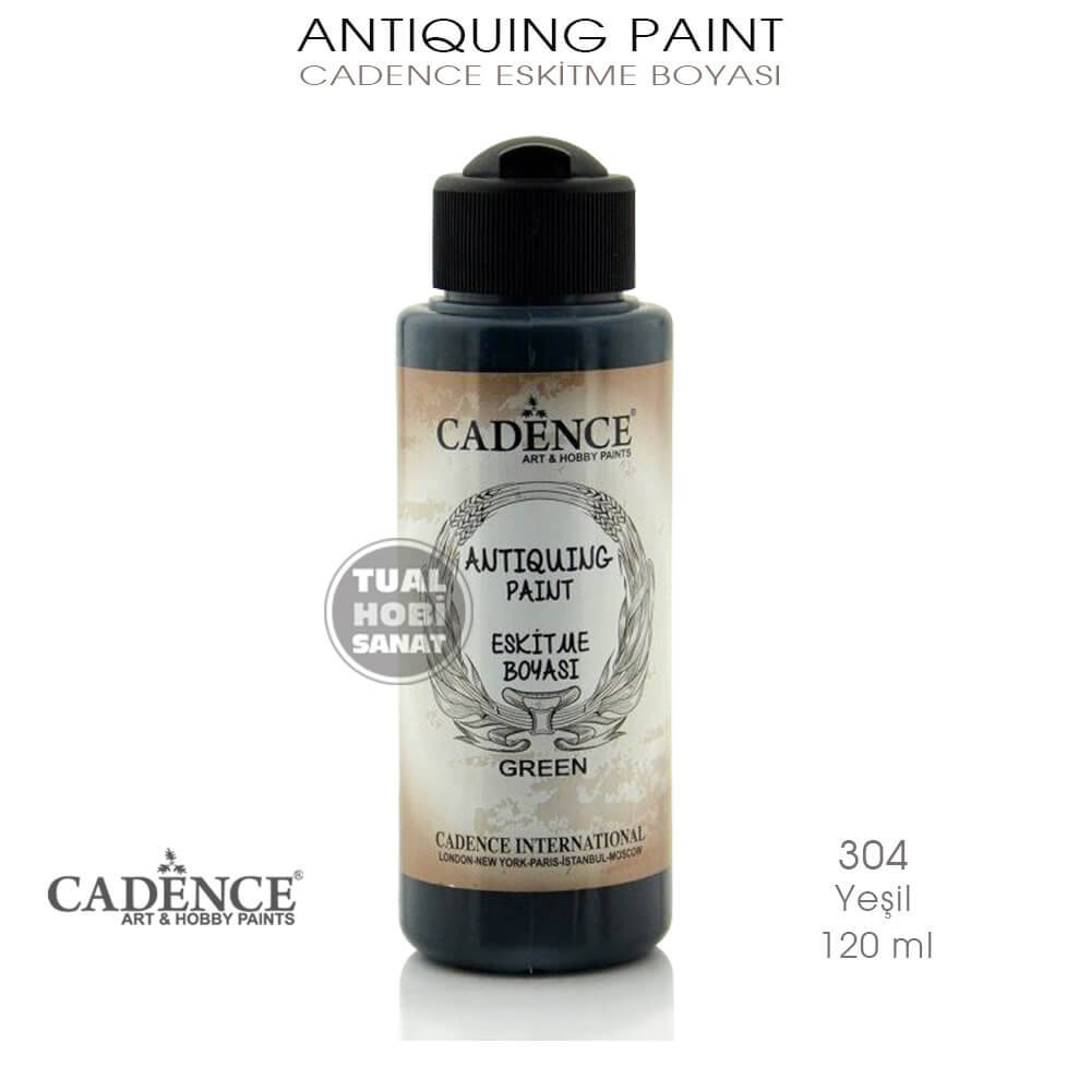 Cadence antiquing boyaları su veya tercihen glazing medium ile karıştırıldıklarında üzerlerinde daha fazla çalışma süresi sağlamaktadır. Kullanılan eskitme boyasının yarısı kadar kullanılan glazing medium sayesinde; yüzeyde kolayca budak çalışması, mermerleme, silme gibi tekniklerle eskitme yapılabilmektedir. Gerçekçi bir eskitme etkisi için projenizi çok parlak bir vernikle sonlandırmamanızı öneririz. Bilindiği gibi eski objelerin büyük çoğunluğu çok parlak değildir.