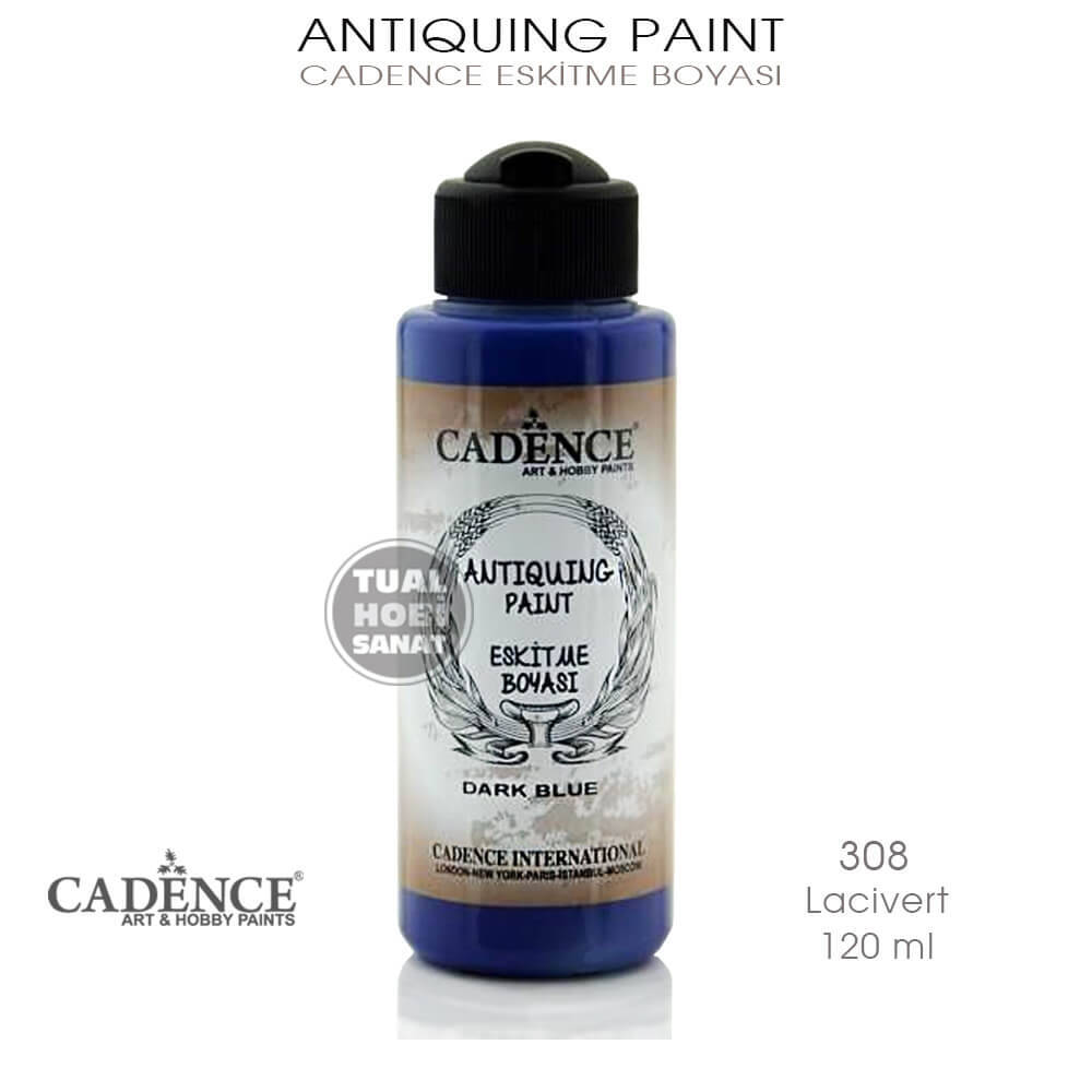 Gelince Haber VerCadence dark blue lacivert renkli antiquing eskitme boyası, su ve glazing medyum ile inceltilebilen, özellikle polyester gibi detaylı ve girintili yüzeylerde başarılı sonuçlar veren, su bazlı eskitme boyasıdır. Akışkan bir yapıya sahip olan cadence eskitme boyaları, diğer boyalardan daha geç korumakta, dolayısıyla üzerinde daha fazla kurumadan çalışılabilmektedir. Yüzeye sürüldükten sonra ıslak bir sünger yardımıyla istenildiği kadar silinebilmekte, detay ve çukur bölgelerde silinmeden kalan boya, objeye eskimiş bir görünüm kazandırmaktadır.