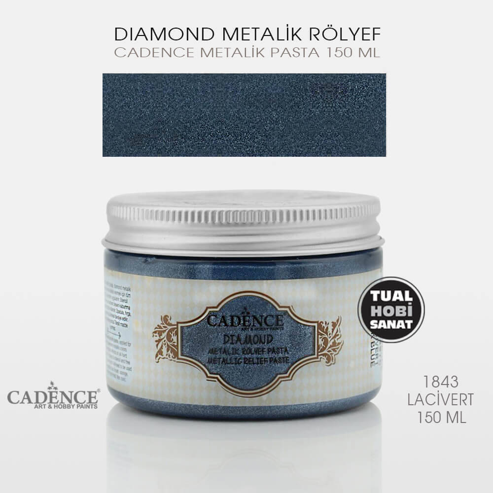 Cadence Diamond Metalik Rölyef Pastanın hobi projelerinde 3 boyutlu görüntü oluşturmasının yanısıra, sahip olduğu metalik renklerle, projelerinizi farklı bir boyuta taşımaktadır. Kuruma süresi uygulamanın kalınlığına bağlı olmakla birlikte, genellikle 12-16 saat sonra zımparaya gelen kemikleşmiş yapıya ulaşmaktadır.