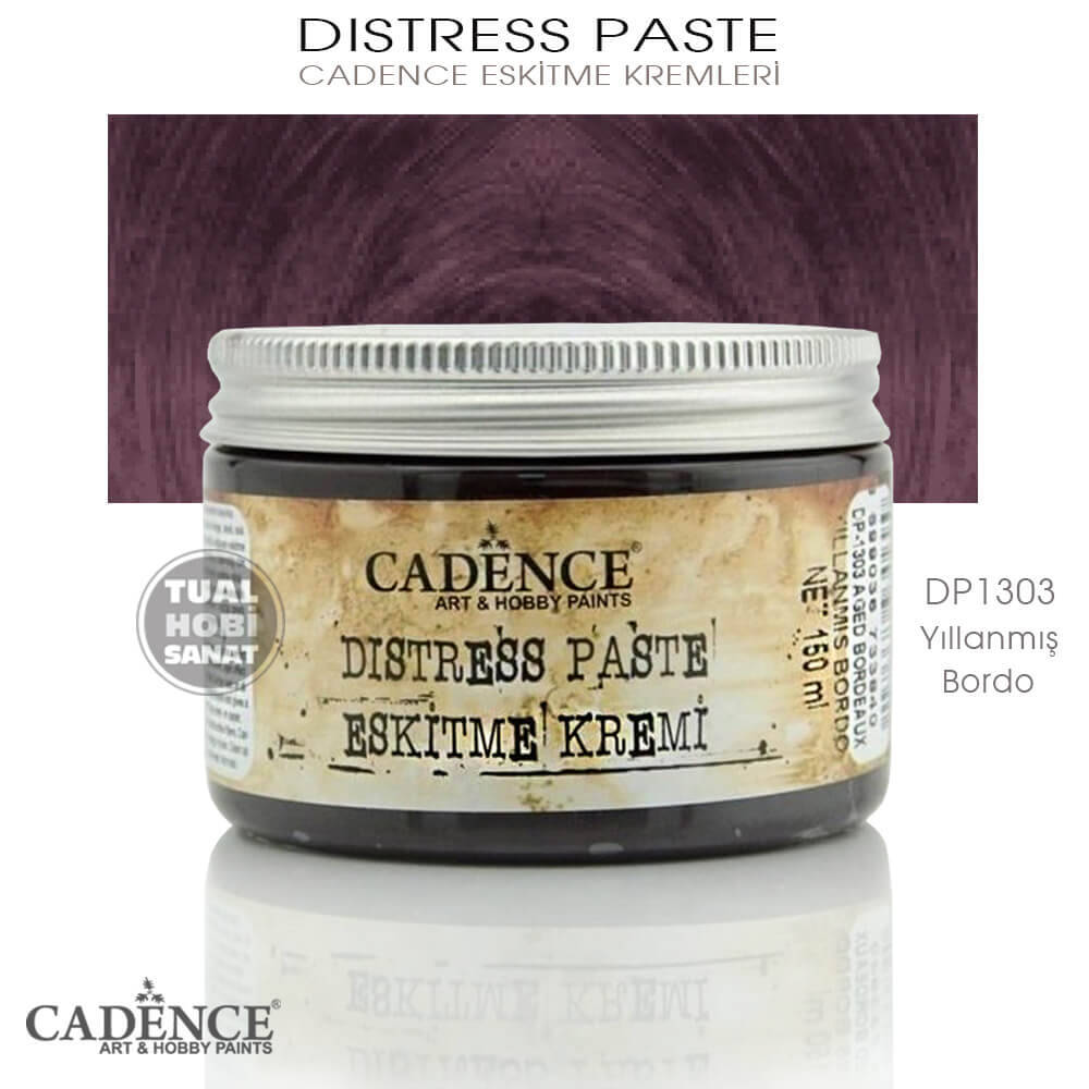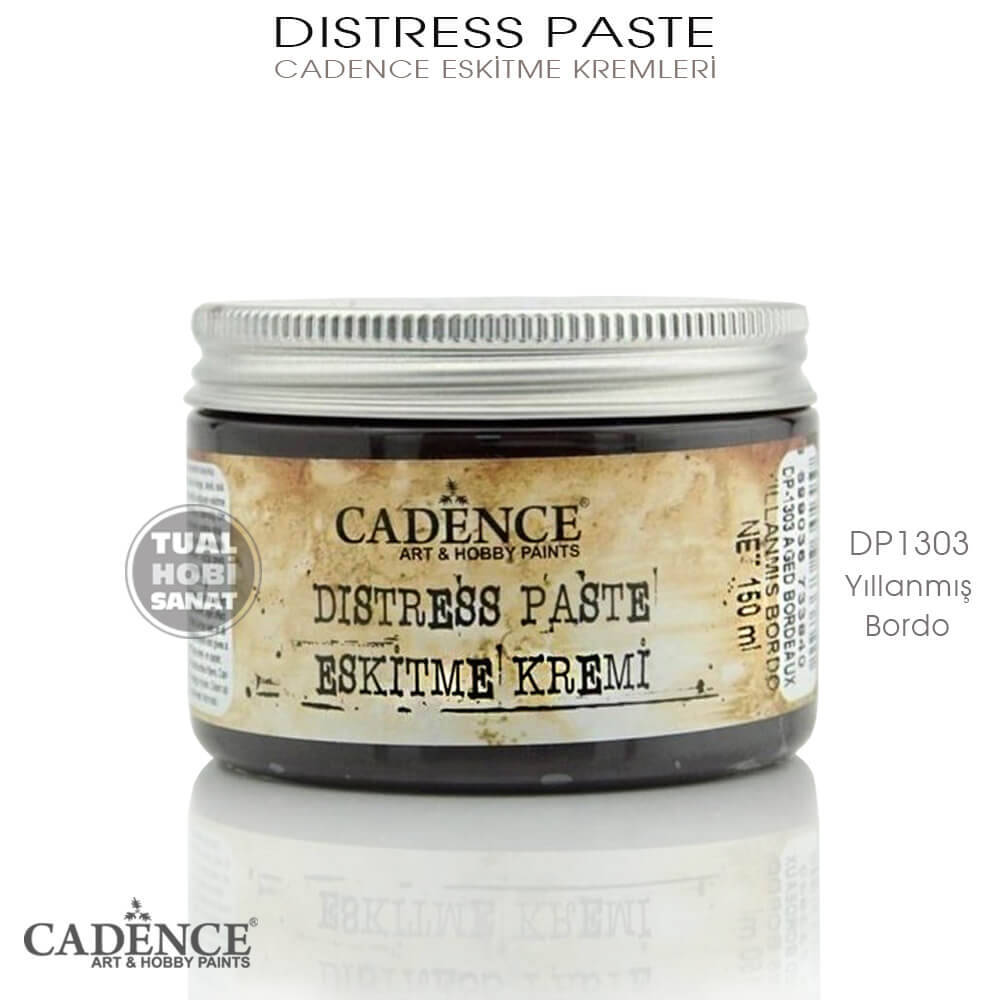 Gelince Haber VerCadence yıllanmış bordo renkli eskitme kremleri, her türlü hobi projelerinde, en gerçekçi, vintage, lekeli, eski ve yıpranmış görünüm verir. Fırça ve süngerle uygulanan distress paste eskitme kremi, ahşap, mdf, mobilya, metal, polyester, seramik, cam, mum, plastik ..vb tüm objelerde kullanılabilir. Su bazlı bir ürün olan eskitme kremleri, içerisinde sağlığa zararlı hiçbir toksik madde içermez.